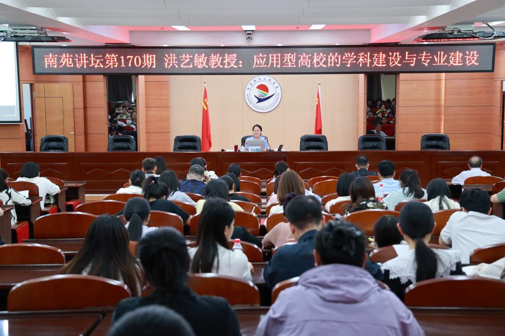 5月27日下午,洪艺敏做客第170期南苑讲坛作专题报告,学校领导、各教学单位全体干部、专业长、教师200余人参加,教师发展中心主任潘宇主持。