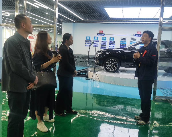 座谈会前,赵丹丹陪同代表团一行参观齐三机床厂、产教融合基地,重点介绍学校在校企合作、课程建设、微专业开设等方面取得的成果。