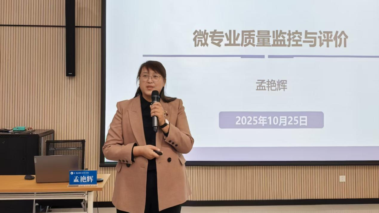 全面质量办公室主任孟艳辉作了《微专业质量监控与评价》主题分享,从监控目标、具体措施、评价反馈、未来思考四方面进行了系统深入的阐述,为构建科学有效的质量保障体系、推动微专业内涵式发展提供了清晰指引与行动遵循。