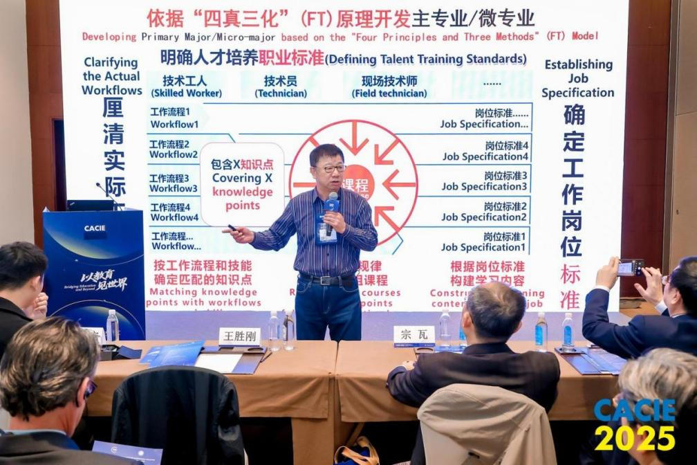 曹勇安在民办高校国际交流与合作论坛上作题为《AI赋能于“一带一路”人才培养》的专题报告,他从“一带一路”人才培养面临的问题入手,给出依据“四真三化(FT)”原理开发主专业和微专业的破解方法,并以驾考为例,详细阐述了微专业开发原理。他强调,人类的智能活动,一旦被拆解为已知事件和规则步骤,就会被人工智能所替代。