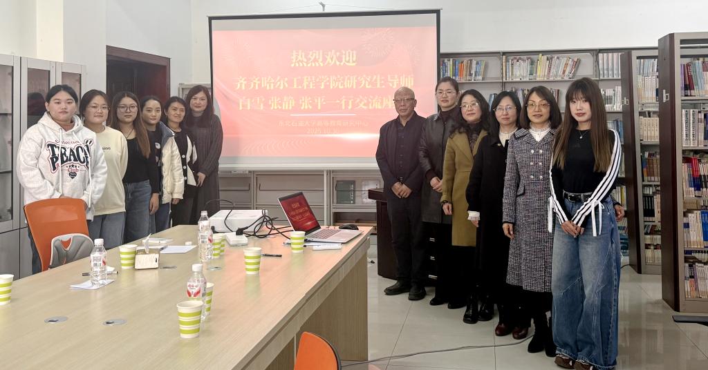 10月30日,学校副校长白雪、副校长张静、科研处处长张平一行三人赴东北石油大学高等教育研究中心考察交流。三人均兼任东北石油大学研究生导师。考察期间,她们与东北石油大学高等教育研究中心主任马云阔、副主任付云霞、研究生导师何影等进行了深入交流。