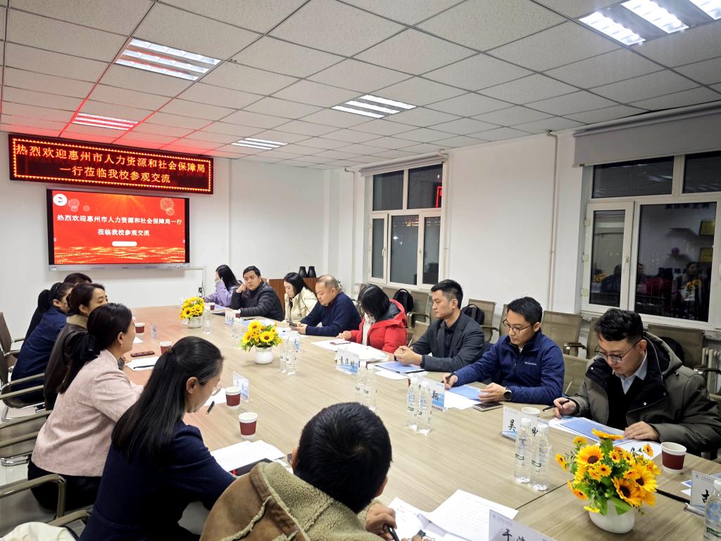 为贯彻落实广东省“百万英才汇南粤”人才行动计划,12月22日,惠州市人力资源和社会保障局人才交流服务中心主任黄三元带队,携市人社局职建科、人才市场管理中心、仲恺高新区社会事务管理局等相关部门负责人,以及惠州亿纬锂能、TCL科技集团、广东利元亨智能装备股份有限公司等企业招聘及人力资源高管一行来校,围绕深化产教融合、推动高质量就业开展深入交流。学校党委副书记、纪委书记、副校长陈景鑫出席座谈会,学生发展中心主任康静,产教集团及各学院主要负责同志陪同交流。