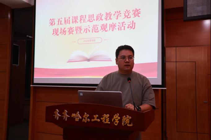现场赛采用“教学展示+现场问答”形式,参赛教师依次进行教学展示,聚焦专业课程特色,深入挖掘思政元素,通过案例教学、互动设计等多种方式,将价值引领有机融入课堂教学,引导学生树立正确价值观,增强社会责任感与创新意识,充分展现了课程思政的教学魅力与实践成果。