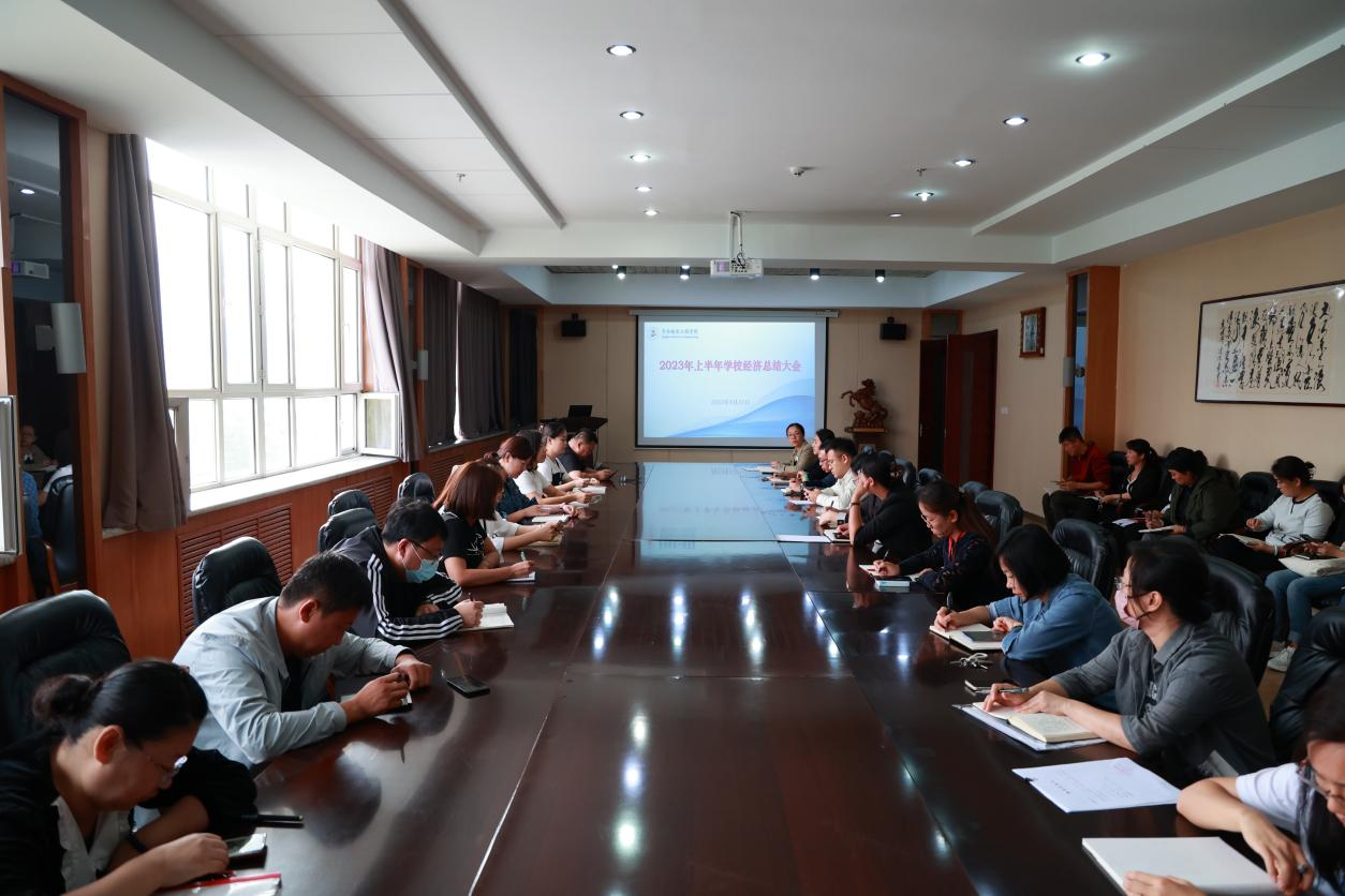 8月31日下午,2023年上半年学校经济总结大会在图书馆603南会议室召开。校领导、各部门负责人、独立核算单位负责人参加,姜岩主持。首先,财务处孙爱萍公示了上半年独立核算单位经济指标完成情况、办学单位培训指标完成情况,以及财政专项资金的使用情况,并希望各单位明确指标任务,合理统筹规划,按时完成年度经营目标。随后,财务处王瑜公示了2023年上半年学校整体预算、部门预算及专项预算执行情况,指出存在的不足,提出改...