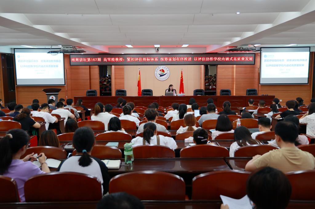 8月8日上午,学校南苑讲坛第167期在图书馆601报告厅举行,特邀新乡学院教务处处长兼课程中心主任,教育部“增材制造工程”专业创始人,教育部本科教育教学审核评估专家高雪霞教授作专题讲座。评建办主任蒋春艳主持,学校领导、全体干部、教师聆听讲座。高雪霞教授以《紧扣评估指标体系 统筹谋划有序推进 以评估助推学校内涵式高质量发展》为题,对新乡学院概况、自评自建工作、迎评注意事项、评估体会感悟四方面内容进行了深...