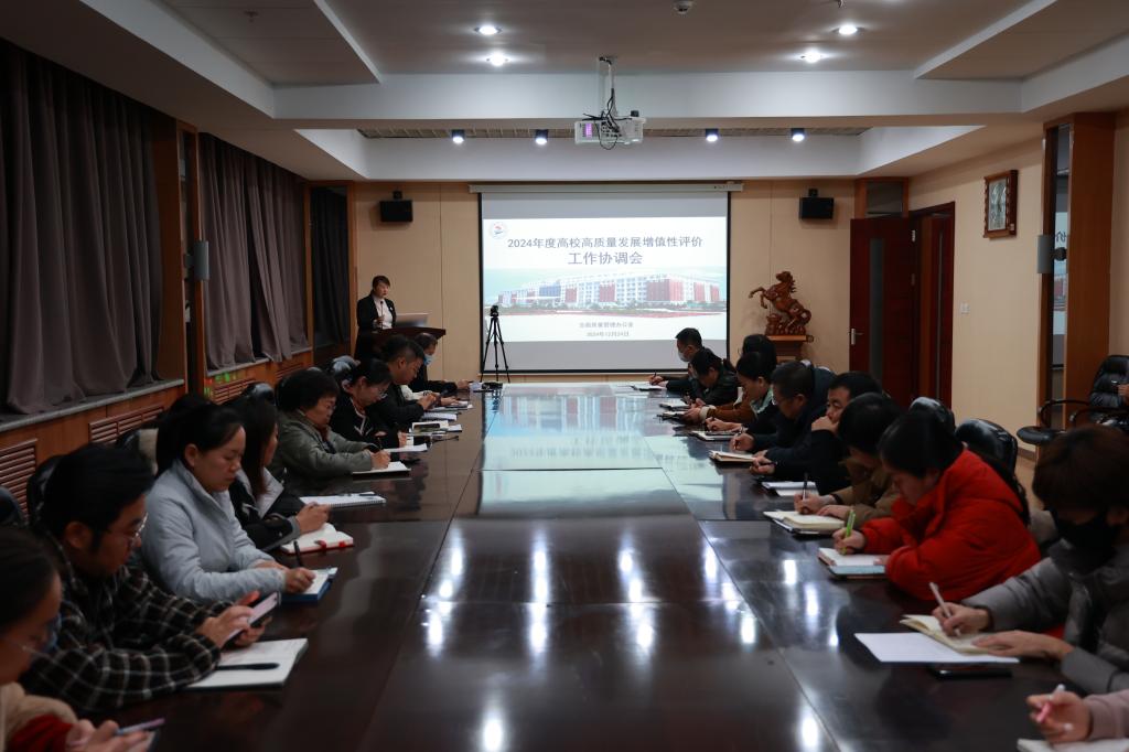12月24日下午,学校在图书馆603南会议室召开2024年高质量发展增值性评价信息填报协调会。学校领导出席会议,各部门负责人参加。全面质量管理办公室主任孟艳辉介绍了学校在2023年高质量发展增值性评价工作取得的成绩和存在的不足,说明了2024年信息填报内容、进程安排和改进的要点。党委副书记、常务副院长陈景鑫指出,各部门要对增值性评价工作高度重视,牵头部门与配合部门加强沟通,要本着“一盘棋”思想,确保数据详实准确。...