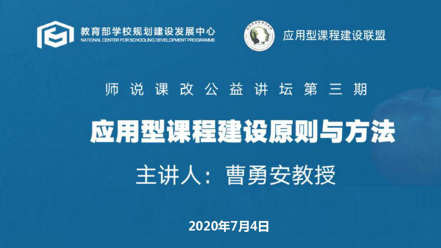 7月4日上午,由教育部学校规划建设发展中心、应用型课程建设联盟主办的“师说课改”公益讲坛(第三期)以线上直播方式举行,开云官网理事长曹勇安教授应邀作《应用型课程建设原则与方法》专题报告,吸引来自各高校、研究...