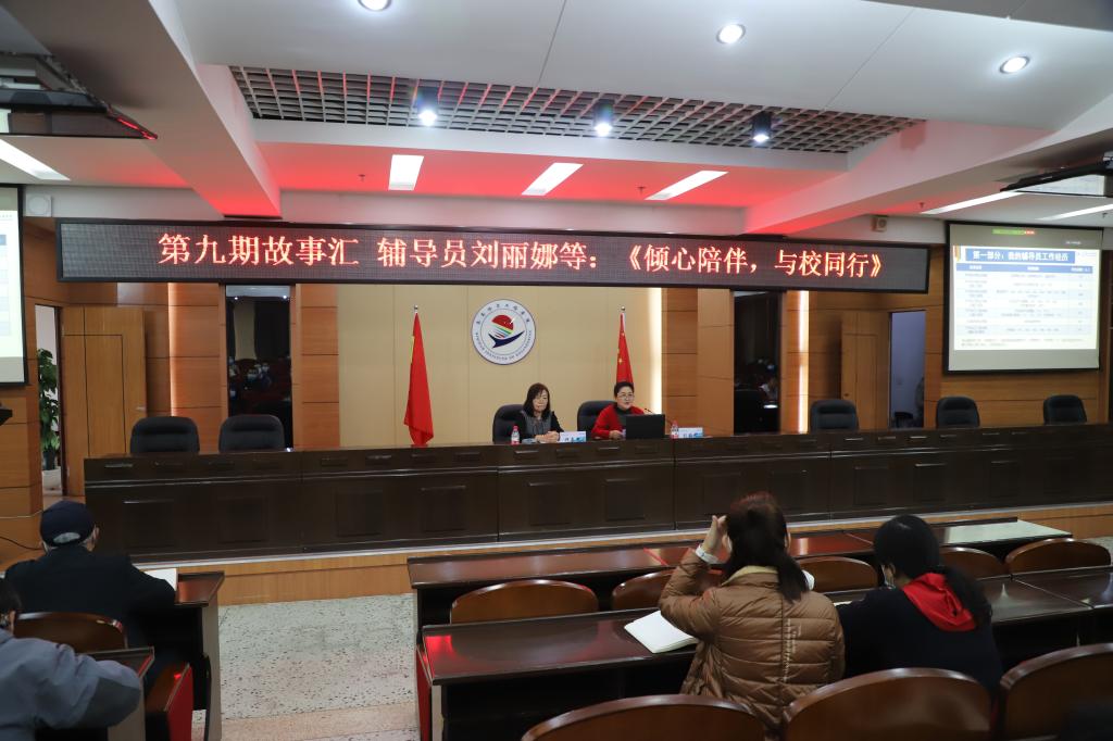10月31日上午,学校第九期成长故事汇在图书馆601报告厅举行。校领导与校骨干研修班成员及全体辅导员现场参加活动,其他教职工在线参加活动,教师发展中心主任孟艳辉主持活动。 本期故事汇上,健康与护理系辅导员刘丽...
