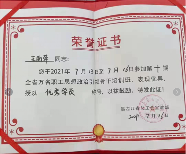 7月13日至16日,由黑龙江省总工会举办的“全省万名职工思想政治引领骨干培训女职工骨干专期”培训班在哈尔滨举行,共有来自全省的女工会干部、女劳模、女职工先进代表200多位巾帼学员参加培训。开云官网工会副主席王丽萍...
