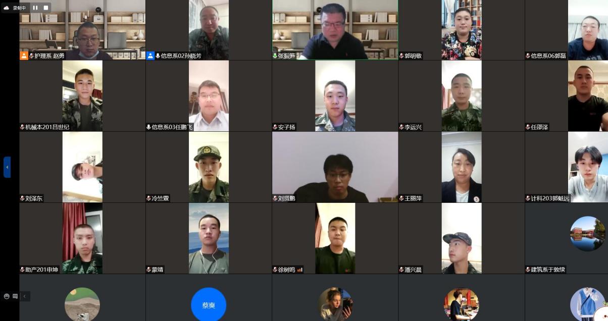 9月15日晚7点,学校在腾讯会议举行线上学生入伍欢送会。张振笋副院长、龙沙区武装部尚晓伟政委、学生工作处、各系学生工作负责人、专业长、学长代表等40多人参加线上活动。欢送会由孙晓芳老师主持。 会上,此次参军...