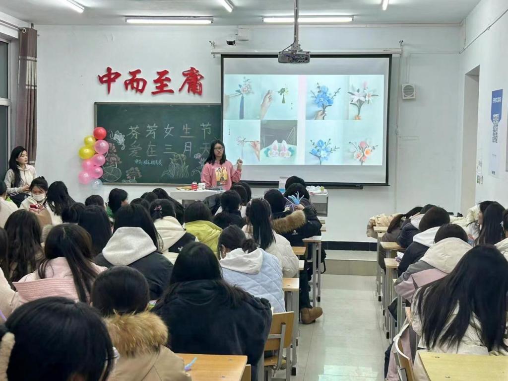 为丰富学校女生的校园文化生活,校团委于3月7日开展“花漾年华,邂逅芳香”女生节活动。在各教学区楼下,工作人员身着玩偶服,为女生们送上了糖果和气球花束等礼品和真诚的祝福。女生们纷纷与玩偶合照,保留这美好的瞬间,现场气氛活跃。学生工作处负责人王丽萍,生涯导师魏军等还为3月7日过生日的女生组织一次移动式的生日会,教师为寿星戴上了生日帽,并送上了精美的礼物和美好祝福。本次活动,不仅为学生们带来关爱和温暖...