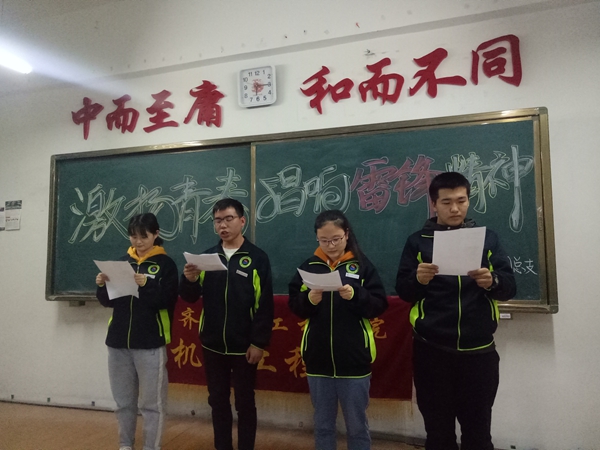 3月21日,机电系团总支举办“学习雷锋好榜样”朗诵比赛,来自各班共19组同学参赛。李峰同学的一首正能量歌曲为比赛开场,接着机械本183班的朗诵4人组齐声赞颂雷锋精神,一体化181班的徐哲宇、机械本184班的张成坡讲述...