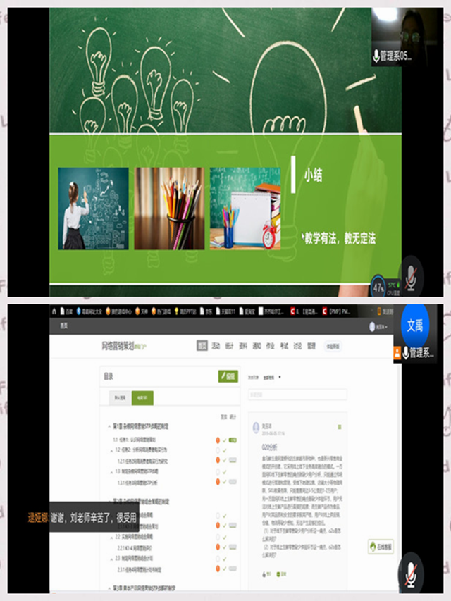 为更好地推动专业课程建设,3月12日19时,管理工程系组织第一周教师培训,管理工程系二级督导刘玉洁教授进行培训,管理工程系主任陈景鑫、教学工作副主任李文禹、以及来自管理工程系、健康与护理系等20余名教师参加。...