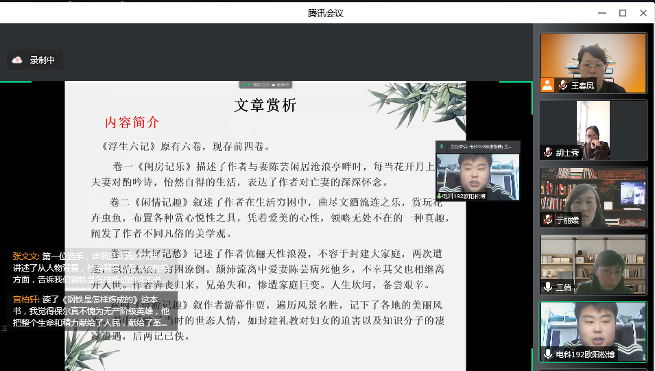 4月28日,大学语文教研室线上举办以“全民阅读 书香中国”为主题的第十一届校园读书节系列活动之读书汇报大赛。校宣传部副部长王倩、校语委办胡士秀、大学语文全体教师、全体参赛选手及近200名学生代表参加,求索文学...