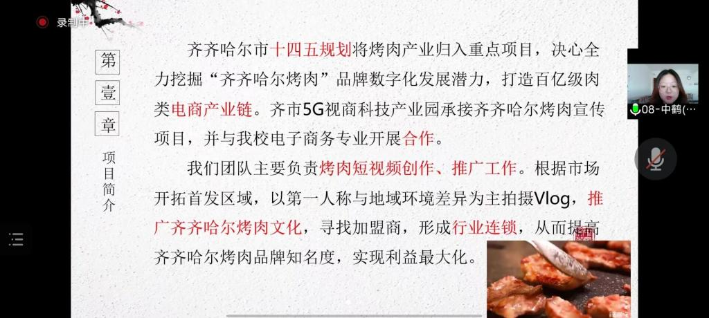 7月26日上午,经线上评比,开云官网电子商务专业李明泽团队的项目作品《齐齐哈尔烤肉短视频推广》获得第十一届中国创新创业大赛市级预选赛优秀奖。 中国创新创业大赛是由科技部、财政部、教育部等多部委联合发起的,科技...