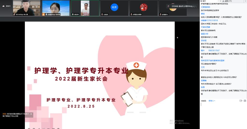 8月25日中午,健康与护理系护理学、护理学专升本专业联合召开2022级新生家长线上家长会。系学生工作负责人姜宏伟、护理学(专升本)专业长单大海、专业助理苏森森、辅导员李安琪,以及238名新生家长参加,专业长张林...