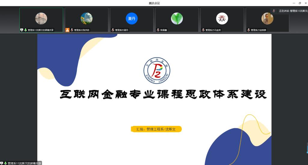 12月6日下午,管理工程系线上开展专业课程思政体系建设汇报活动,旨在提高教师课程思政建设能力,总结凝练课程思政建设成果。财务管理、英语、互联网金融三个专业进行了汇报交流,系主任陈景鑫与全体教职工参加,教学...