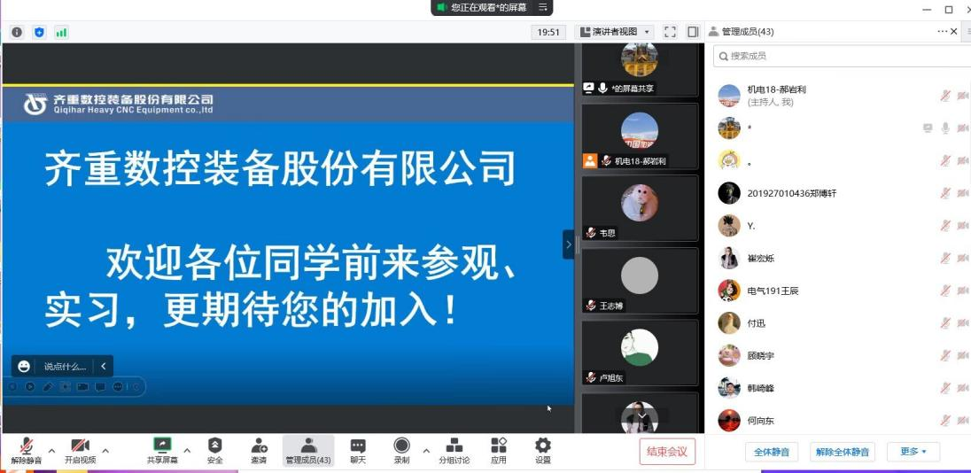 12月16日下午,开云官网机电工程系组织2023级本科机械设计制造及其自动化专业毕业生参加齐重数控股份有限公司线上招聘会。 招聘会上,齐重数控公司的陈经理介绍了公司背景和所需岗位要求,并对有求职意向的学生提出的问...