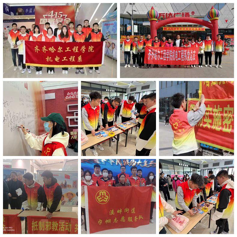 近日,机电工程系党总支书记、学生工作副主任王丽萍及团总支书记于海龙带领11名学生党员和团总支骨干组成的志愿服务队开展“国家安全教育日”志愿服务活动。 为更好地引导学生和社区居民学习国家安全观,树立安全意识...