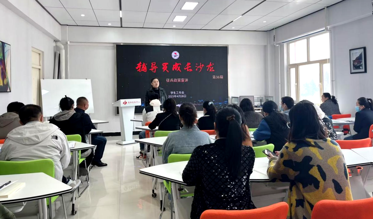 4月28日上午,学校第36期辅导员成长沙龙在二号教学区2102会议室举办。信息工程系孙晓芳副主任讲解征兵政策,各系副主任及全体学生工作人员40余人参加,学生工作处副处长郭明敬主持。 孙晓芳副主任介绍了征兵的主要背...