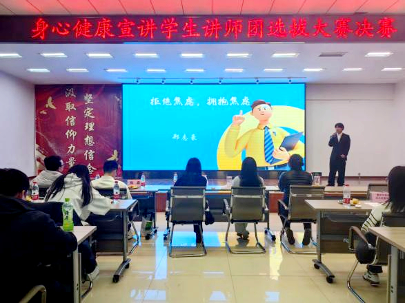 学生发展中心、健康与护理系在2号教学区2508会议室共同举办第二届身心健康宣讲学生讲师团选拔大赛决赛。邀请学生社团联合会、大学生创业者协会以及大学生心理发展协会的八名骨干作为嘉宾出席,健康与护理系教师陶磊、姜锐,学生发展中心指导教师周倍娴、张贺、艾涵塽担任本次选拔赛评委,全校100余人参加本次活动。本次身心健康宣讲学生讲师团选拔大赛共分为两个赛道,分别为健康与护理系赛道和大学生心理发展协会赛道,经过...