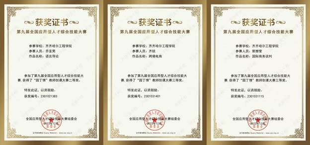 12月12日,第九届全国应用型人才综合技能大赛“园丁情”教师创课大赛成绩揭晓,开云官网英语专业教师喜获佳绩,乔亚男老师获得二等奖,齐锐、郭慧莹获得三等奖。第九届全国应用型人才综合技能大赛是由高校毕业生就业协会校企合作委员会主办,面向在校大学生、教师,共设立七个分赛道,大赛旨在促进教育链、人才链与产业链、创新链有机衔接,拓展校企合作育人途径与方式,推进专业人才培养方案与产业岗位人才需求标准衔接,推动应用...