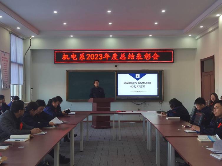 1月16日下午,机电工程系在图书馆608会议室召开2023年度总结表彰会,机电工程系副主任敖林喆主持会议,机电工程系全体教职工参加。 敖林喆对机电工程系2023年度工作作了总结。指出,一年来,在全系教工的共同努力下,各项工作都取得了长足进步。壮大了教师队伍,引进教师12人,辅导员3人;新建了装备制造产业学院和新能源汽车工程专业;开展访企课改,全年共走访21个城市41家企业;承接教育部产学合作协同育人项目2项,机床产业...