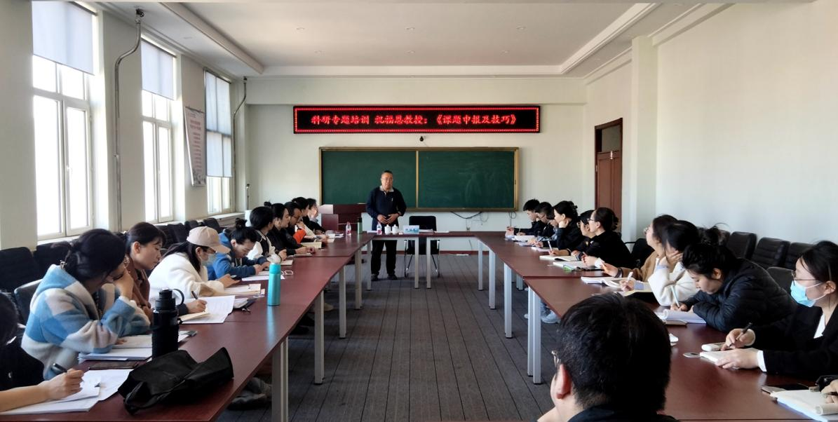 4月19日上午,学校科研处在图书馆608会议室举办《课题申报及技巧》专题讲座。学校马克思主义学院顾问、哈尔滨工程大学马克思主义学院教授、博士生导师祝福恩应邀担任主讲,学校50余名相关专业教师现场聆听讲座。科研处副处长张平主持活动。祝福恩教授结合自身课题申报经历,讲述了做科研的价值、国家社科基金项目申报要求、技巧等方面内容,详细介绍了国家社科基金项目申报书的撰写要领、项目书的具体评审流程及申报过程中应注...
