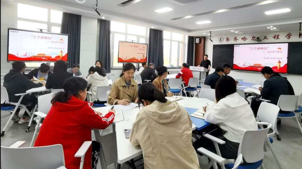 为教育引导广大党员进一步强化纪律意识、加强自我约束,深入开展党纪学习教育,近日,机关第二党支部在图书馆414教室开展党纪学习教育专题党课学习活动。支部书记李文禹在会上作题为《“三个讲明白”——党纪学习教育》的报告,支部组织委员宋庆永主持活动,支部全体成员参加。李文禹从讲清楚党员容易“犯的错”、讲清楚纪律规矩“划的线”、讲清楚违规违纪“酿的果”三个方面内容,为与会党员上了一堂生动的专题党课。他强调,...