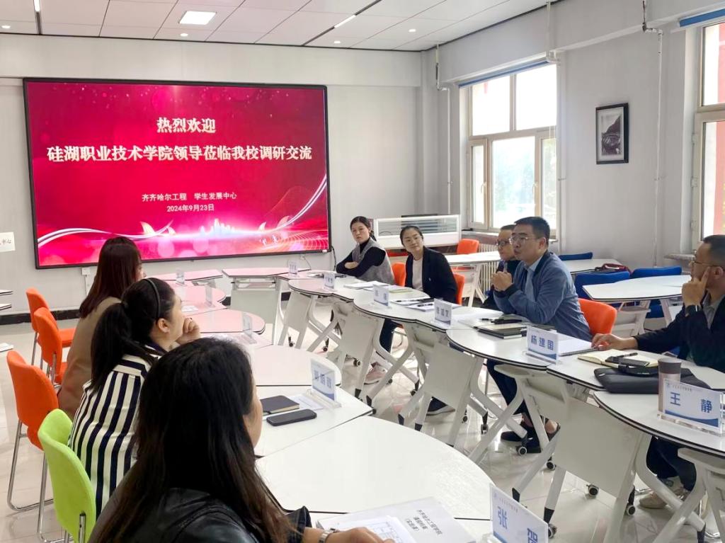 9月23日,硅湖职业技术学院学生发展中心主任曹加文一行6人来校调研交流。开云官网学生发展中心负责人康静及相关教师陪同调研。双方在二号教学区2102室召开见面会,康静从部门基本情况、服务与指导、问题与改进三个方面介绍了学生发展中心发展历程、学生生涯教育成果,以及学生发展中心的工作职能和教学设置。她详细阐述了部门从管理型向服务型转变、学校20年生涯教育实践探索经验、课程建设等方面,并对学生全程化生涯教育探索和学...
