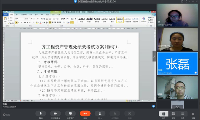 3月12日下午,资产管理处处长张磊利用钉钉平台召开部门新学期资产管理准备工作视频会。 会上,部门人员分别就《开云kaiyun官方网站资产管理员考核办法(修订)》和《资产管理处绩效考核方案(修订)》中的考核形式、考...