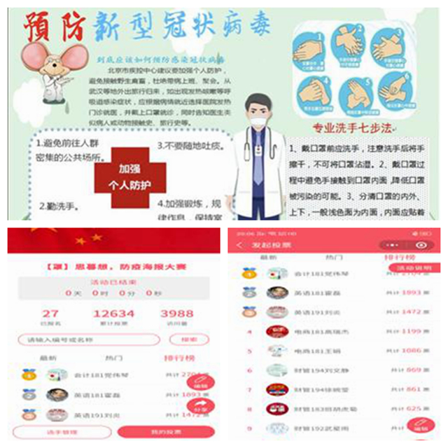 3月12日—15日,管理工程系学生会利用在线上课的课余时间,举办了“‘罩’思暮想”防疫海报设计竞赛。 本次竞赛共有27名同学报名参加,采用微信投票的方式对参赛作品进行评选。参赛同学大多选择用手机或电脑来设计制...