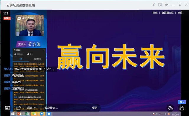 4月10日晚,学生发展中心为2020届毕业生举办企业家云讲坛,邀请国家一级企业培训师、中国百万圆桌教育网总顾问管志波作《赢向未来》讲座,700余名学生聆听讲座。 管志波老师的讲座以“我们追求什么”为切入点,结合...