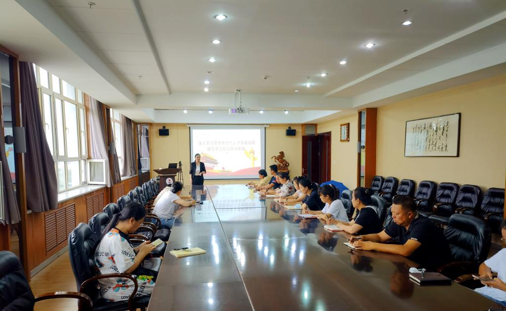 7月14日下午,党委委员、副院长白雪组织分管部门及机关第四党支部党员在图书馆603南会议室召开学习贯彻习近平新时代中国特色社会主义思想主题教育专题党课。 白雪副院长以《深入学习贯彻新时代人才强国战略助力齐工...