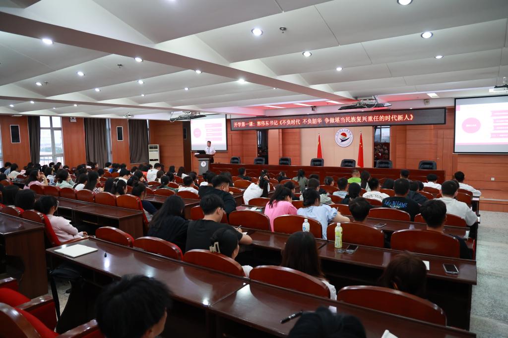9月7日,学校党委书记郭伟东以“不负时代 不负韶华 争做堪当民族复兴重任的时代新人”为题,讲授“开学第一课”,2023级143名党员、积极分子聆听党课。“刚才,我听到不少同学在不停的咳嗽,这时候的齐齐哈尔的天气,早晚比较凉,请大家注意添加衣服,预防感冒”在亲切的关怀中,郭书记开始以党课形式讲“开学第一课”。郭书记围绕“奋进新时代,建功正当时”“立足新起点,志当存高远”“开启新征程,扬帆再出发”三个方面与...