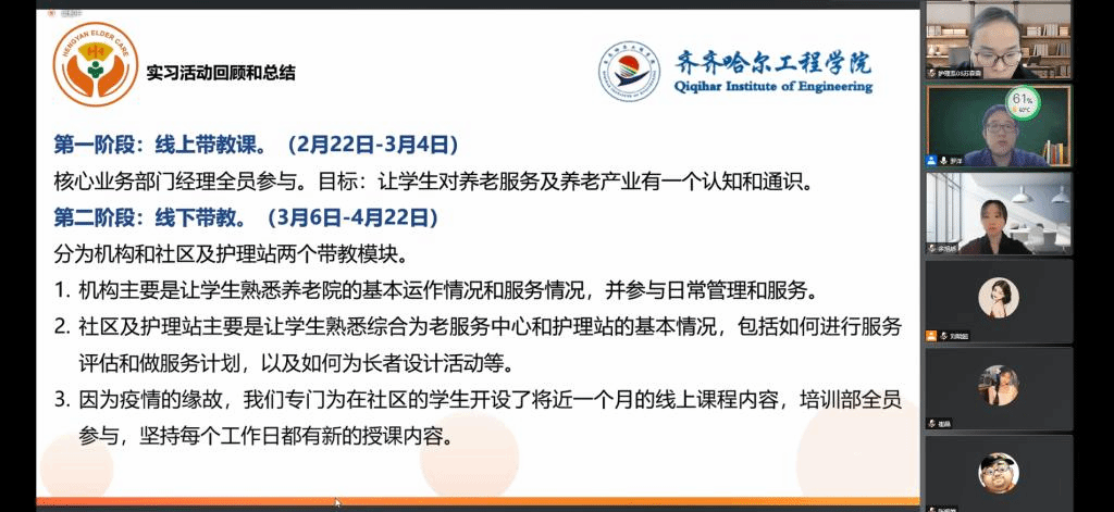 4月23日9时,健康与护理系和上海乐邦养老服务有限公司共同组织线上“访企拓岗促就业”校企合作专题会议。副院长张振笋、健康与护理系负责人郭玲玲主任、上海乐邦养老服务有限公司董事长李侠等校企业双方领导及相关专...